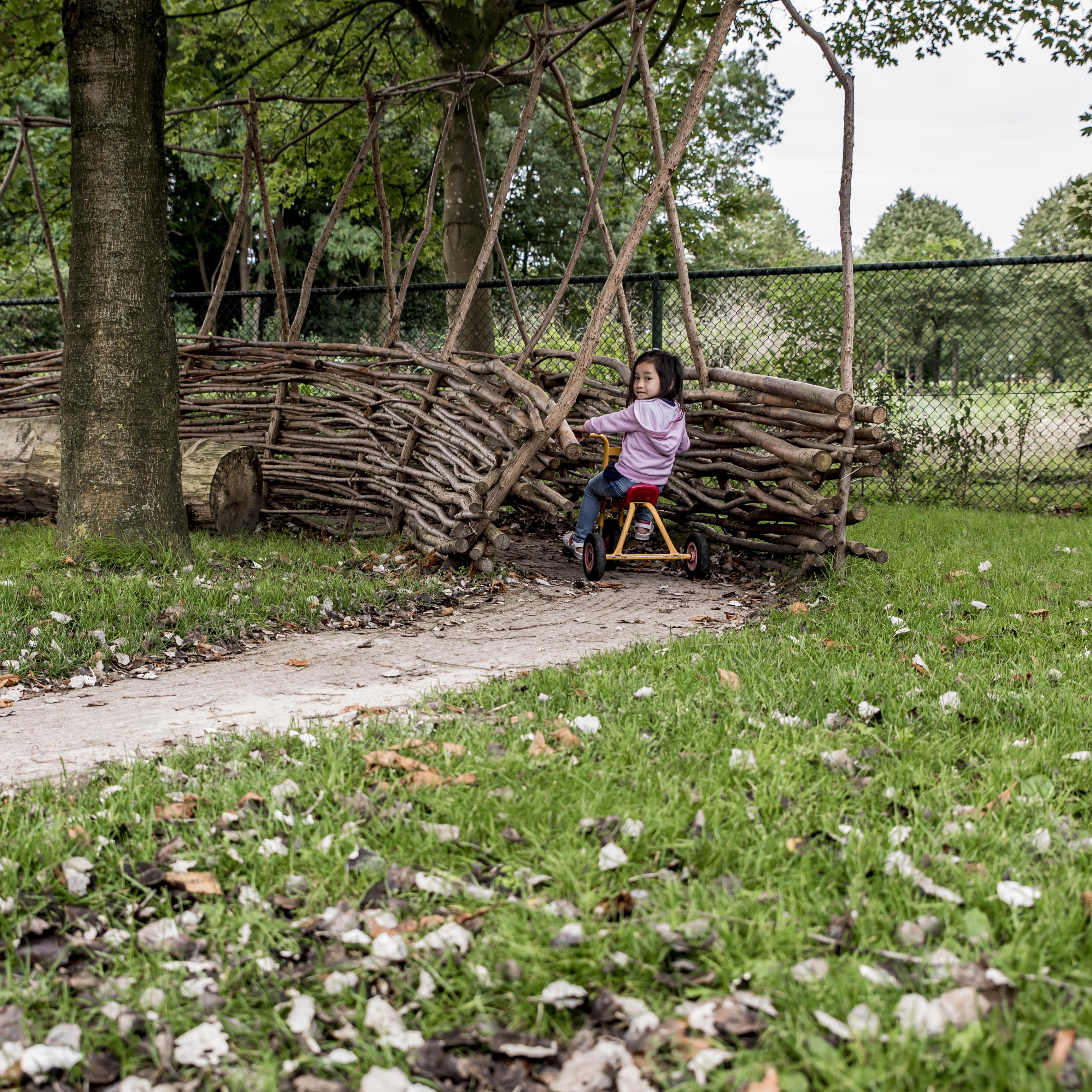 Dagelijks frisse lucht, dieren bestuderen, door het gras rennen of onder de bomen spelen? Bij de Kinderkeet kan het! Door onze unieke locatie uitkijkend over een natuurgebied én onze eigen vier grote Natuurtuinen, speelt de natuur bij ons dagelijks een grote rol. Regelmatig zien we de hazen voor de deur en kijken we met de kinderen waar hun huisje is. Elke twee groepen hebben samen hun eigen Natuurtuin waarin ze kunnen fietsen onder de wilgenboog, kruipen door het gras, spelen onder de boom of water kunnen geven aan de fruitbomen. We vinden het belangrijk dat kinderen lekker buiten kunnen spelen en dagelijks frisse lucht krijgen. We laten ze de natuur ook binnen ontdekken door met Natuur gerelateerde thema’s te werken zoals de seizoenen, planten en de dieren.